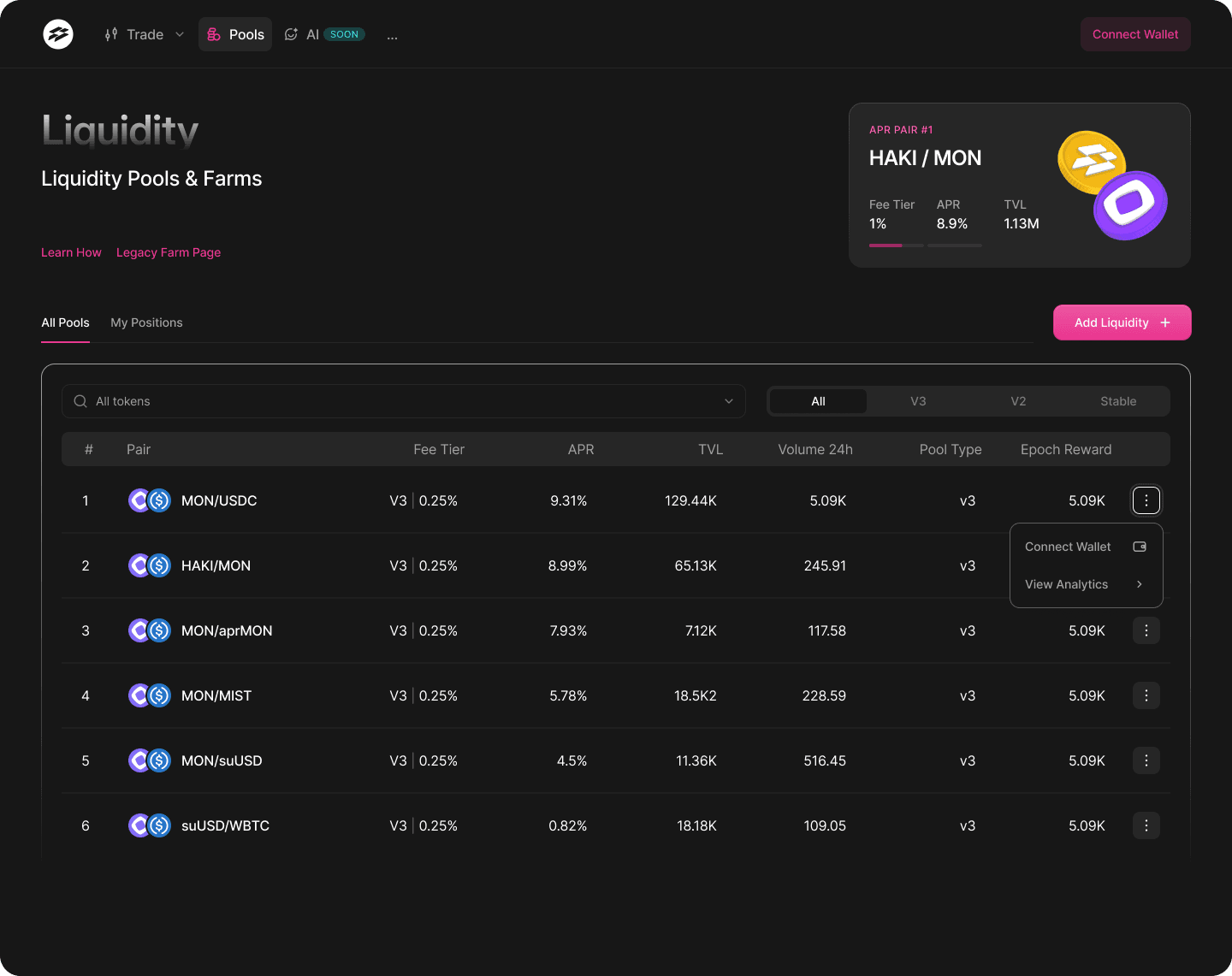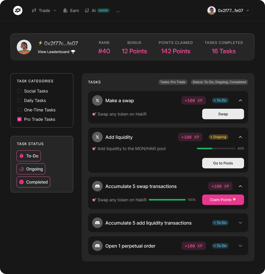 Hakifi is an advanced DeFi hub combining Aggregator × Perp DEX on the Monad chain.